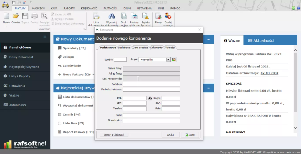 Branża edukacyjna opiera się na dużej liczbie klientów i powtarzalnych usługach. Program do fakturowania od Rafsoft pozwala szybko przygotować dokumenty po zakończeniu szkolenia oraz uporządkować dane uczestników i firm.